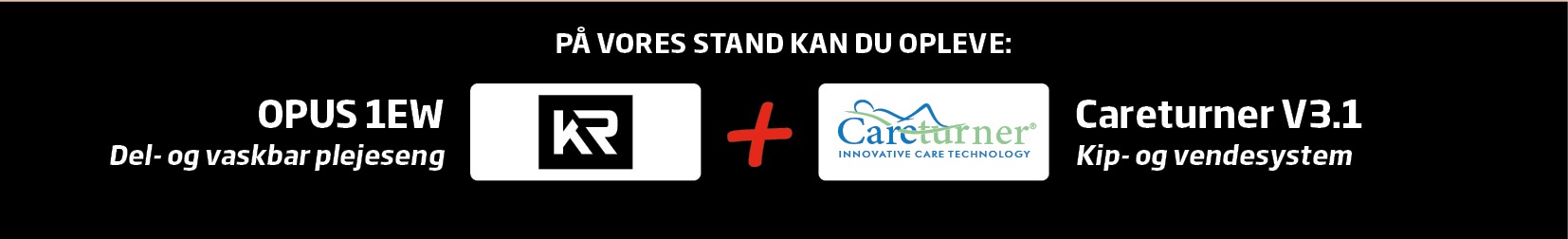 Fra KR kan du opleve den nyeste udgave af OPUS 1-plejesengen, som er en del af SKI-aftalen. Den veldokumenterede, del- og vaskbare OPUS 1EW-plejeseng vises med det nyeste Careturner V3.1-kipsystem – en innovativ add-on-løsning, der sammen med sengen giver dig:
